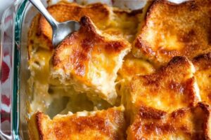Allow the casserole to rest for 10-15 minutes, enabling bread to soak up maximum flavor.