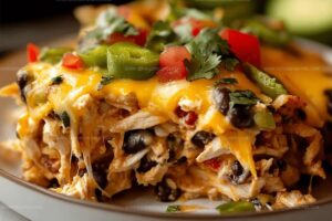 Layers of tender chicken, zesty spices, and melted cheese create a mouthwatering casserole that feels like a warm hug.