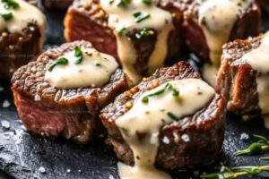 Sizzling Garlic Butter Steak Bites with Parmesan Cream Sauce Recipe
