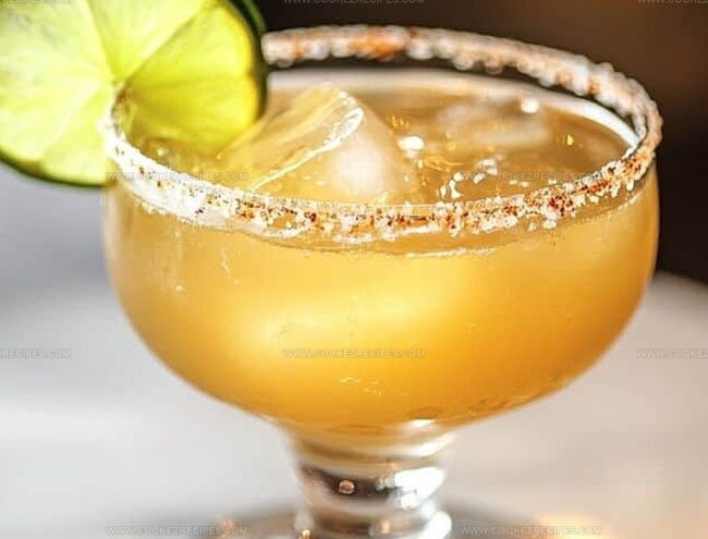 - Fill a prepared glass with additional ice cubes and gracefully strain the spiced margarita mixture into the vessel.