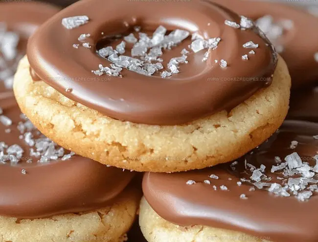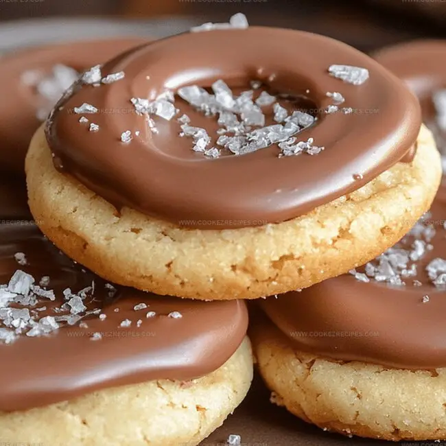 - Assemble the cookies by carefully drizzling warm caramel over each cookie base. Once caramel slightly sets, generously coat with melted chocolate. For an elevated touch, sprinkle flaky sea salt while chocolate remains warm and glossy.